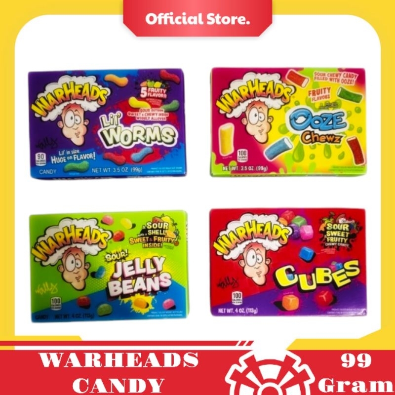 Gigitan kenyal dan asam dalam Warheads Sour Chewy Cubes.
