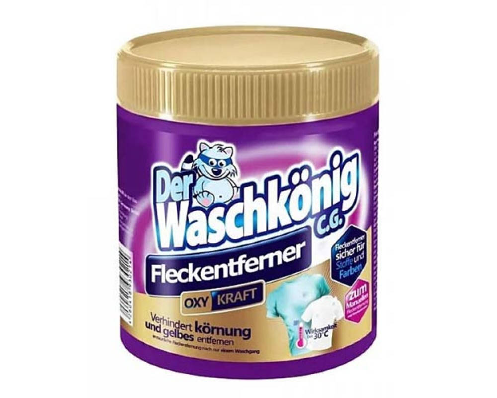 Пятновыводитель Der Waschkönig C.G., порошок - для белых и цветных тканей для ручной или машинной стирки, а также для замачивания. Активная формула пятновыводителя нового поколения гарантирует выведение даже самых стойких и въедливых загрязнений. Средство можно использовать и как добавку к порошку, и отдельно ― для выведения особо сложных, засохших пятен. Waschkonig - мощный усилитель порошка, эффективен уже при низких температурах. Можно использовать пятновыводитель для всех типов и цветов тканей ― он не содержит в своем составе хлор, поэтому является безопасным для волокон. Стирка. 30 г пятновыводителя (2 ложечки) добавить к стиральному порошку. Замачивание. 30 г. пятновыводителя развести в 4 л тёплой воды (темп. макс. 40 град.) в пластмассовой ёмкости. Цветные ткани следует замачивать 1 час, белые - около 5 часов, а затем постирать ткань как обычно и прополоскать. Удаление сильных загрязнений. Развести 30 г пятновыводителя в 0,5 л теплой воды (темп. макс. 40 град.) в пластмассовой ёмкости и нанести непосредственно на пятно. Затем оставить на 30 мин., постирать и прополоскать ткань как обычно. Рекомендуется не оставлять раствор в плотно закрытой упаковке, так как освобождающийся кислород может вызвать повреждение упаковки. Паста для сильных загрязнений. Следует смешать 1 ложечку пятновыводителя с 4 ложечками теплой воды (макс. темп. 50 град) в пластмассовой ёмкости, быстро помешивать до получения пасты. Пасту следует нанести на пятно, оставить на 10 мин. Затем постирать как обычно и прополоскать ткань. Не оставлять пасту в плотно закрытой упаковке - освобождающийся кислород может вызвать повреждение упаковки. Состав: >30% отбеливаюшие вещества на основе кислорода,