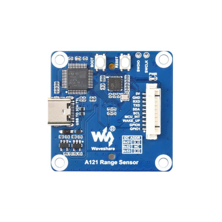 1. Operating frequency: 60GHz2. Modulation method: PCR3. Power supply voltage: 5V4. I/O level: 3.3V5. Output interface: USB / UART / I2C6. Communication baud rate:- UART: 921.6kbps- I2C: 100K / 400K7. Detection distance resolution: 0.03m@25 Dgree Profile18. Detection angle: horizontal 53 degrees; vertical 65 degrees9. Detection accuracy: 0.03m@Profile110. Operating current: 5V 80mA11. Based on 60GHz pulse coherent radar (PCR) technology, it can realize human presence and motion detection and support high-precision distance measurement.12. With configurable detection area and sensitivity parameters, it has good anti-interference capability.13. Module integrates Arm Cortex-M4 MCU. (STM32L431CBT6) can be used as an independent operating unit to directly deploy user applications on Acconeer RSS, or it can communicate with an external host controller via register command protocol.14. Small size, low power consumption, and easy integration, suitable for applications such as human presence detection, proximity sensing, non-contact triggering, and vital sign monitoring.15. A121 60GHz pulse coherent radar (PCR), integrating RF, baseband, and AiP antenna, supporting human presence, micro-motion, and high-precision ranging.16. Integrated arm cortex-M4 MCU (STM32L431CBT6), 80MHz, 128KB Flash, and 64KB RAM, supporting local radar processing.17. Compact 39 × 39 (mm) size, optimized antenna structure, achieving high gain and stable detection. IO interface supports 3.3V.18. Supports UART, I2C, and GPIO interfaces, outputting radar detection results based on register protocol.19. Supports installation through plastic or glass partitions, enabling reliable operation without additional drilling.20. Provides PCB SWD test points for easy RSS and user application development, production line programming, and testing.21. Supports visual host computer integration; a single Type-C cable connects to host computer software for setup and debugging.
