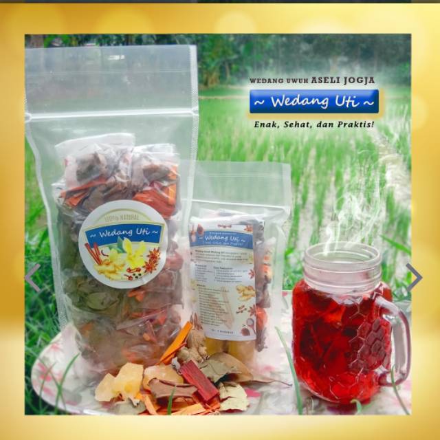 Wedang uwuh Uti merupakan minuman tradisional khas yogyakarta dengan bahan alami seperti jahe segar, daun kayu manis, daun pala, cengkeh, secang dan gula batu. Berkhasiat untuk meningkatkan imunitas tunbuh, melancarkan aliran darah, kaya akan antioksidan dll.