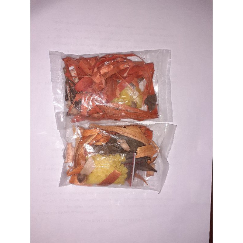 komposisi : kapulaga, daun cengkeh, daun pala, batang cengkeh, jahe kering, sereh, kayu secang, gula batu.