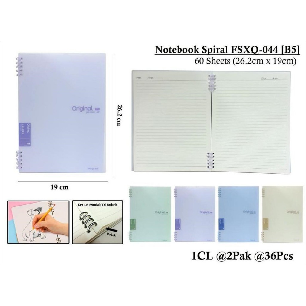 WENGU NOTEBOOK SPIRAL RING ORIGINAL - BUKU CATATAN SPIRAL 60 LEMBAR Fsxq-044-B5