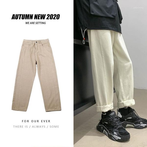 autumn straight jeans men's fashion solid color retro jean pants men streetwear wild loose hip-hop denim trousers mens s-2xl1, Blue