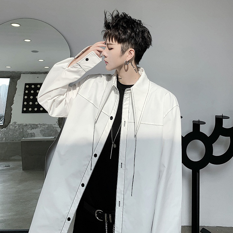2021 New S-. Black Spring Personality Sharp Collar Line Collection Loose Sleeve Long-sleeve Male Fashion Solid Shirt MLIC, White