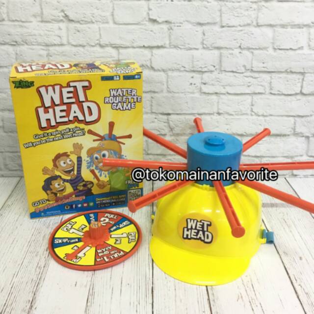 Wet Head adalah mainan prank atau yang sering dimainkan dalam serial running man, cocok untuk anak usia 4tahun+ yang dapat dimainkan 2orang lebih dimana permainannya dimainkan secara bergilir memutar roulate atau dadu, dimana roulate menunjukkan angka, dimana angka menentukan berapa PINS yang dicabut , jika beruntung maka air tidak akan tumpah dan jika kurang beruntung maka air akan tumoah berasal dari wet head helmet yang diisi air.
