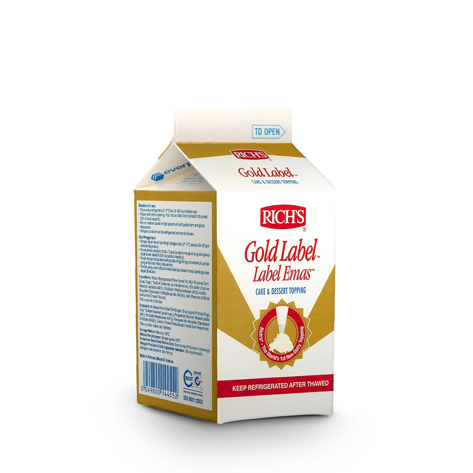 Rich's Gold Label was developed for high volume and cost-sensitive operators. It provides outstanding yield, unmatched stability, a new dairy flavour, and the option to whip at high speed.