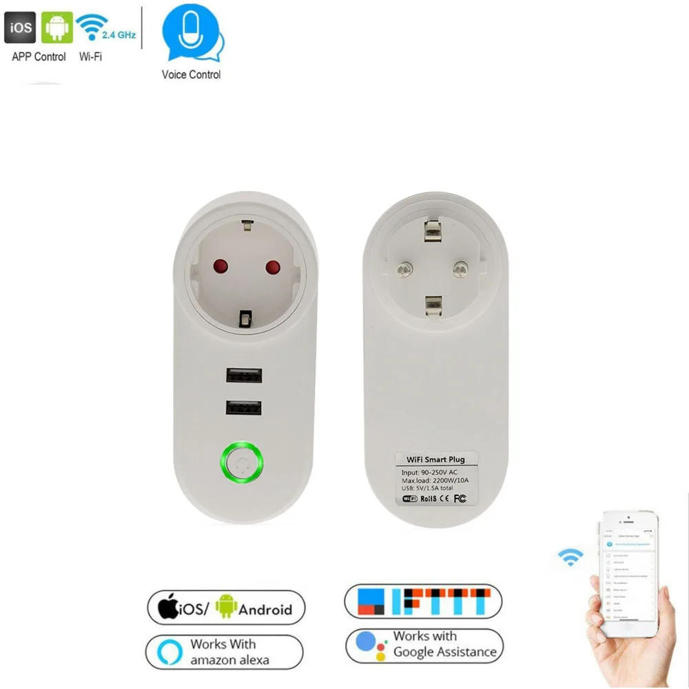 WIFI Smart Plug With Dual USB Ports Timing Socket Wireless Outlet Voice Control Work with Alexa Google home EU Plug