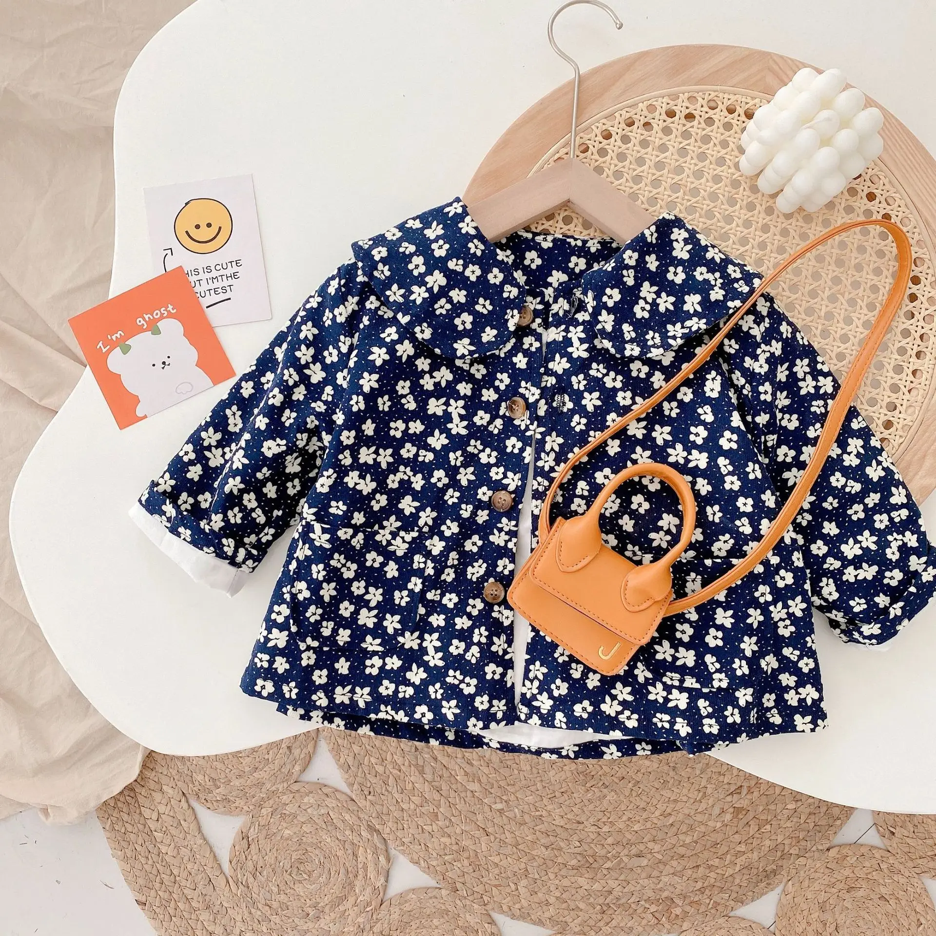 WLG зимняя одежда для девочек, детские темно-синие плотные бархатные пальто с цветочным узором, теплая универсальная верхняя одежда для мале...