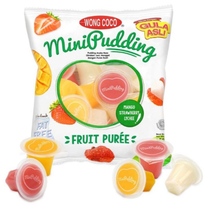WONG COCO Mini Pudding 168 g adalah makanan ringan pudding yang kini telah hadir degan beragam macam rasa dari buah-buahan asli. Terbuat dari beragam puree buah seperti buah mangga, jambu biji merah dan jus leci yang kemudian diolah melalui pemrosesan secara modern, sehingga dapat menghasilkan camilan pudding dengan rasa manis alami buah dan tekstur yang kenyal mudah untuk dimakan. Selain itu, mini pudding dari WONG COCO juga dibuat dari gula asli tanpa pemanis buatan dan tanpa bahan pengawet sehingga aman untuk dikonsumsi. Dibuat juga dengan susu tanpa lemak yang membuatmu gak perlu takut gembil. Tersedia dalam kemasan isi 168 gram yang berisi 12 mini cups. Rasakan perpaduan antara tekstur kenyal pudding dengan kenikmatan manis dari ekstrak puree buah asli hanya di WONG COCO Mini Pudding 168 g.