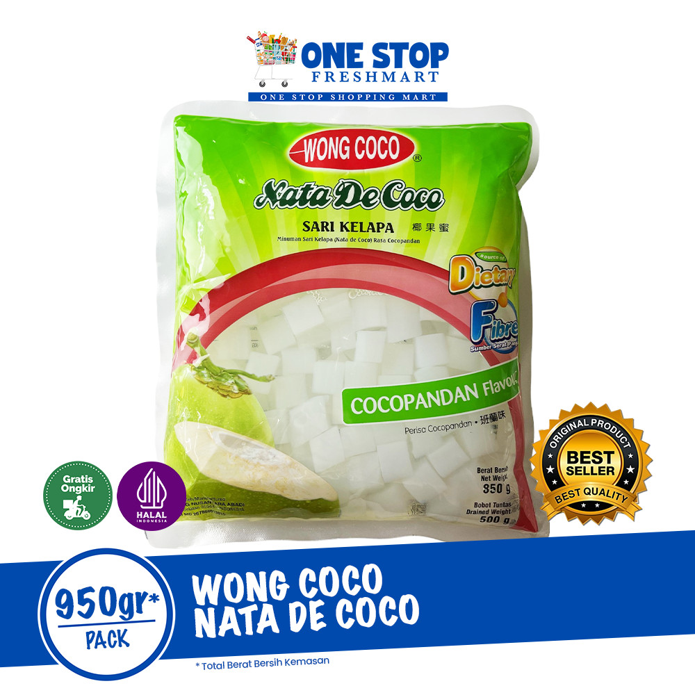 Wong Coco Nata de Coco Rasa Cocopandan. Dihadirkan dengan potongan nata de coco kenyal dalam sirup cocopandan manis dan harum, minuman ini cocok dinikmati langsung atau sebagai campuran es buah, es campur, dan dessert lainnya.