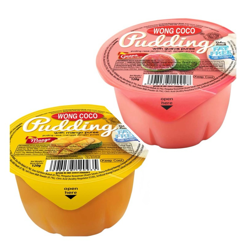 WONG COCO Pudding 120 g adalah sebuah snack pudding dengan rasa jambu biji atau mangga. Pudding yang dibuat dengan bahan bahan berkualitas seperti bubuk agar, susu, gula, dan ekstrak buah asli. Diproduksi secara modern dengan proses yang higienis, sehingga pudding memiliki kualitas tinggi. Pudding memiliki teksur yang lembut dan kenyal, dengan terdapat potongan nata de coco didalamnya. Memiliki rasa dan aroma yang manis dan segar yang khas dari ekstrak buah. Dikemas dalam kemasan cup ukuran 120 gram. Dapat disantap oleh anak anak karena tekturnya yang lunak. Cocok dijasikan makanan pencuci mulut atau cemilan ringan yang sehat.