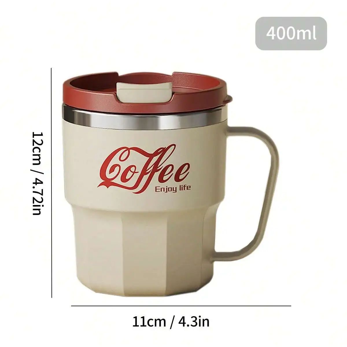 WORTHBUY 400/480 мл 304 Нержавеющая сталь Кофейная чашка с крышкой и ручкой Двухслойная кофейная кружка Посуда для напитков Многоразовая Изолированная чашка для воды кремовый