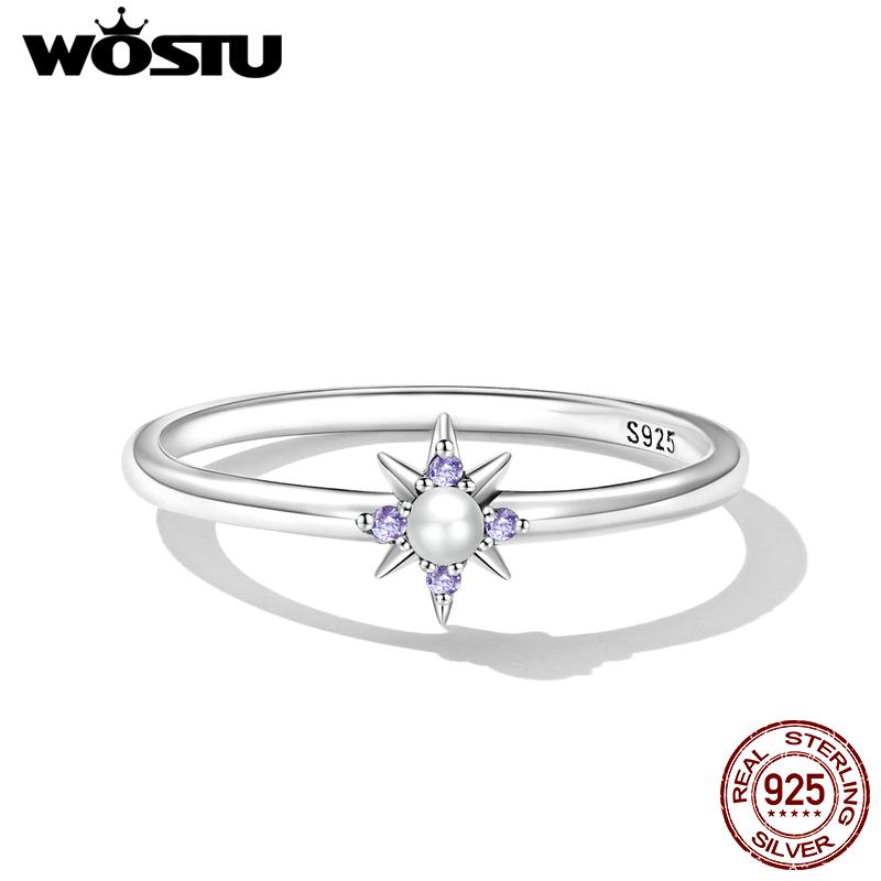 WOSTU Стерлингового Серебра 925 Романтическая Блестящая Ракушка Кольцо со Звездой и Бисером для Женщин Ювелирные Изделия Подарок 8