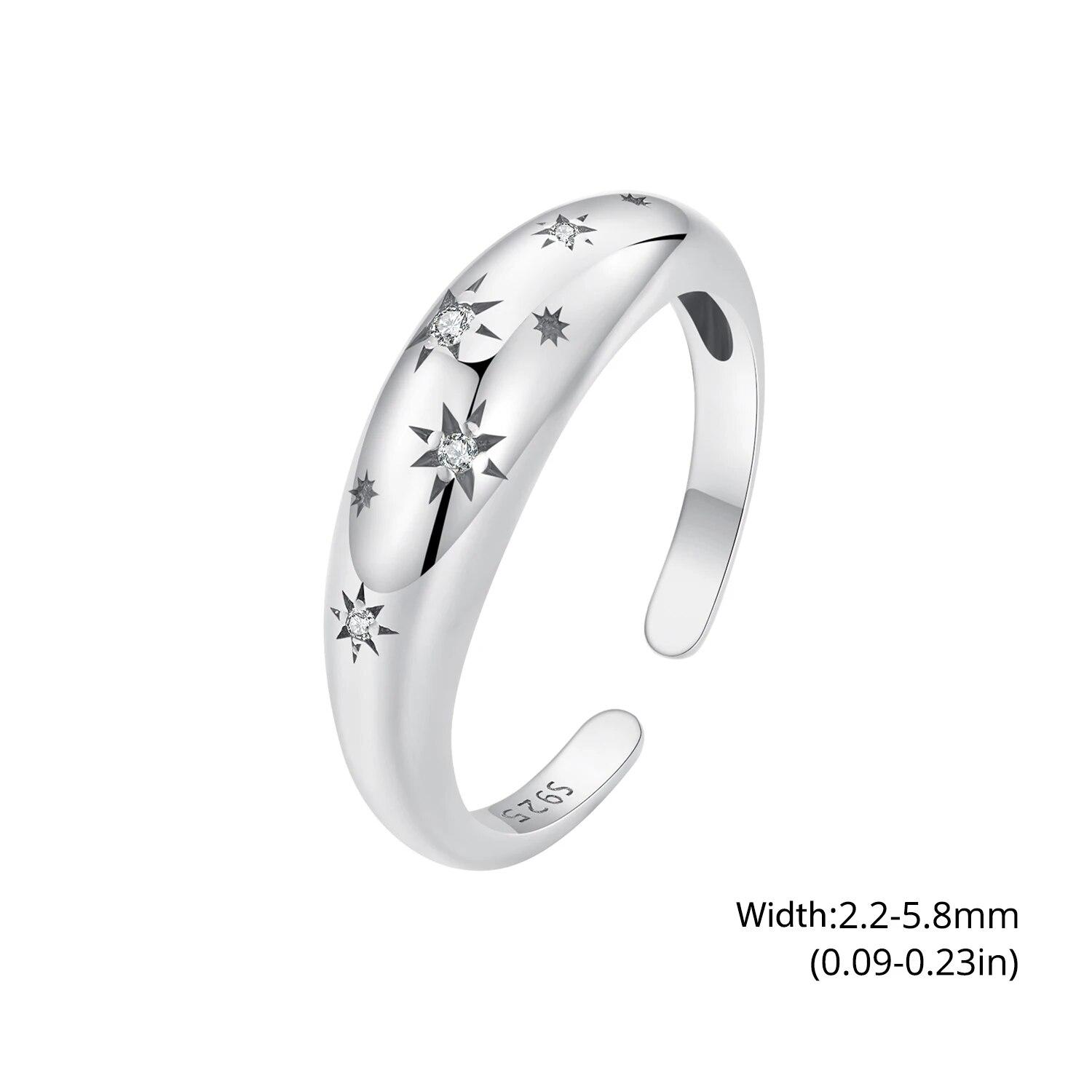 WOSTU Стерлингового Серебра 925 пробы Звездное Открытое Кольцо Простое Кольцо Для Женщин Помолвки И Вечеринки Изящные Ювелирные Изделия Подарки BSR547-E