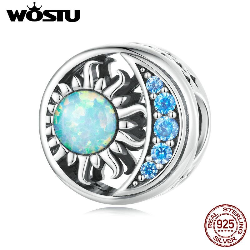 WOSTU Стерлингового Серебра 925 пробы Солнце и Луна Опал Бусина Синий Циркон Луна Подвески для Женщин Браслет и Браслет DIY Изящные Ювелирные Изделия 925 silver