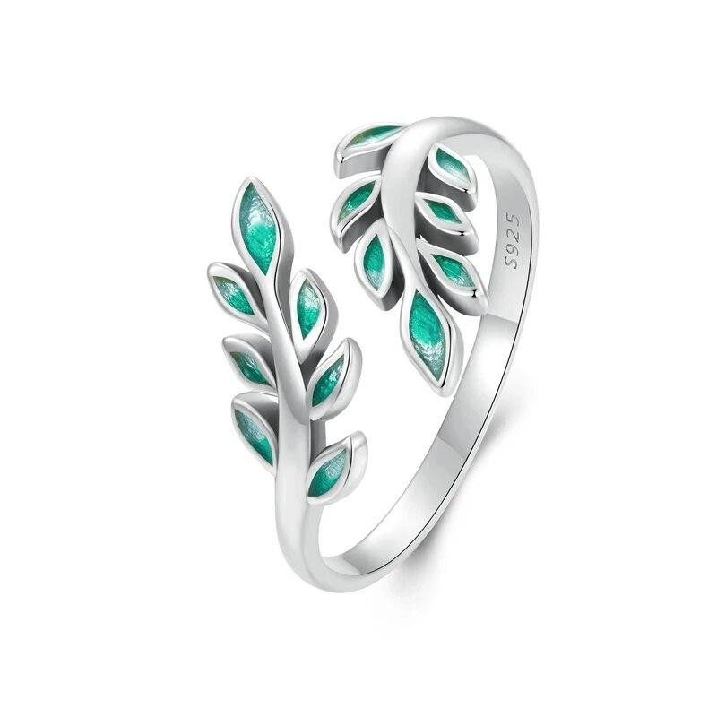WOSTU твердое серебро 925 пробы природа зеленый лист открывающееся кольцо для женщин ручной работы штабелируемые вечерние кольца с растениями ювелирные изделия подарок BSR542-E