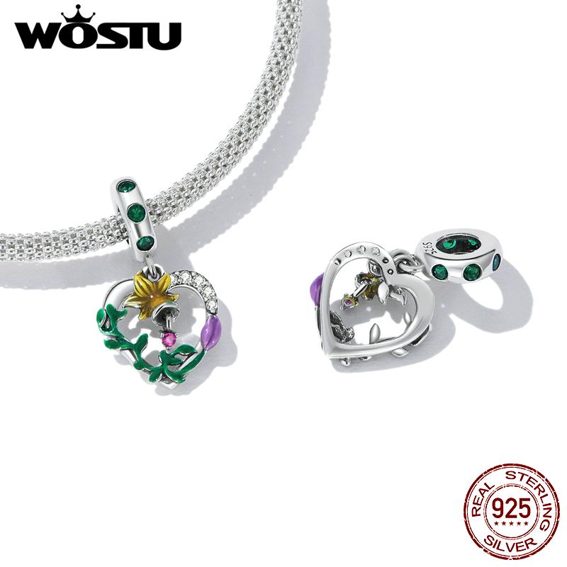 WOSTU 925 пробы серебро циркон полое сердце цветок подвеска для женщин DIY оригинальный браслет 3 мм ювелирные изделия 925 silver
