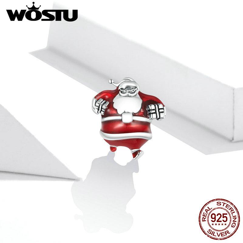 WOSTU Merry Christmas Санта-Клаус бусины стерлингового серебра 925 пробы подвеска для оригинального браслета подвески ювелирные аксессуары 925 silver