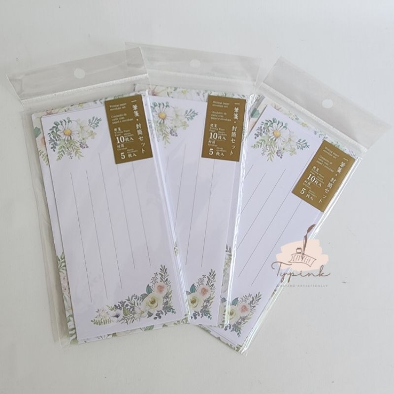 WRITING PAPER ENVELOPE SET -FLORAL KERTAS SURAT AMPLOP SET DAISO JAPAN