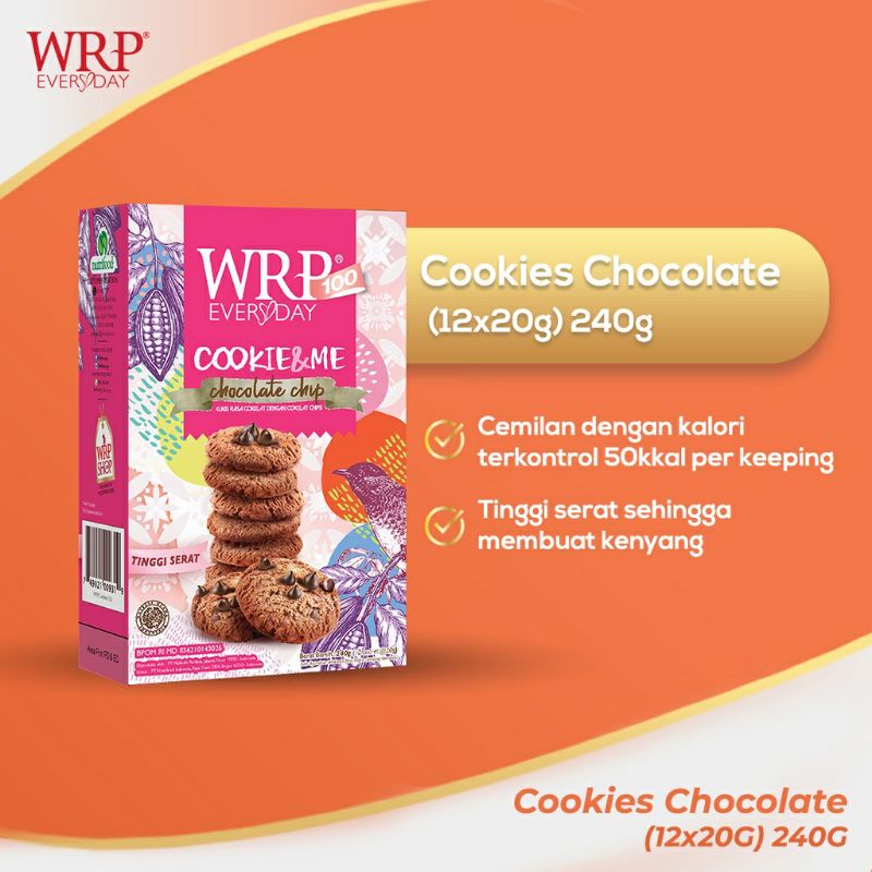 WRP Cookies adalah Cookies rasa coklat yang merupakan perpaduan antara choco chip dan serat pangan oat yang enak dan mengenyangkan.