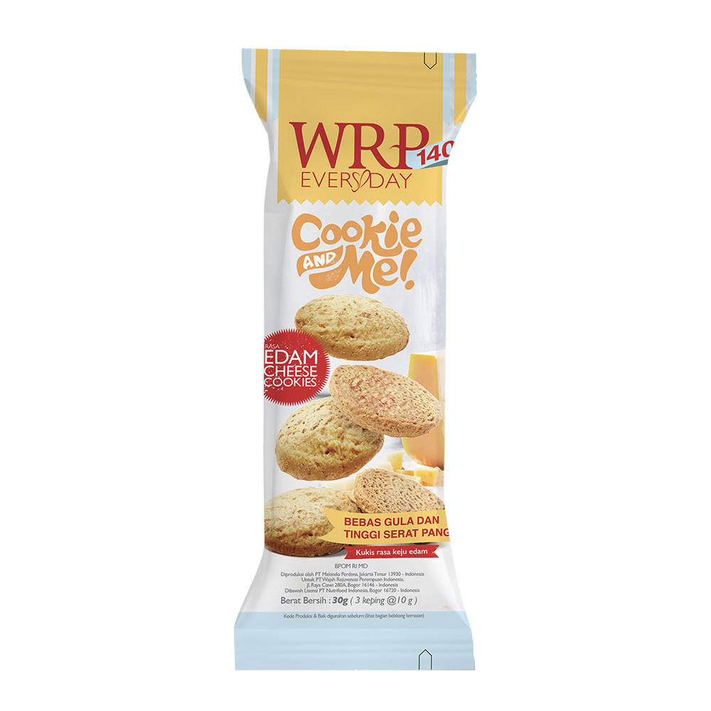 WRP EDAM CHEESE COOKIES 30G merupakan kukis asin dengan rasa keju edam yang cocok dinikmati para penggemar camilan asin. Kalorinya terkontrol dan tidak mengandung gula.