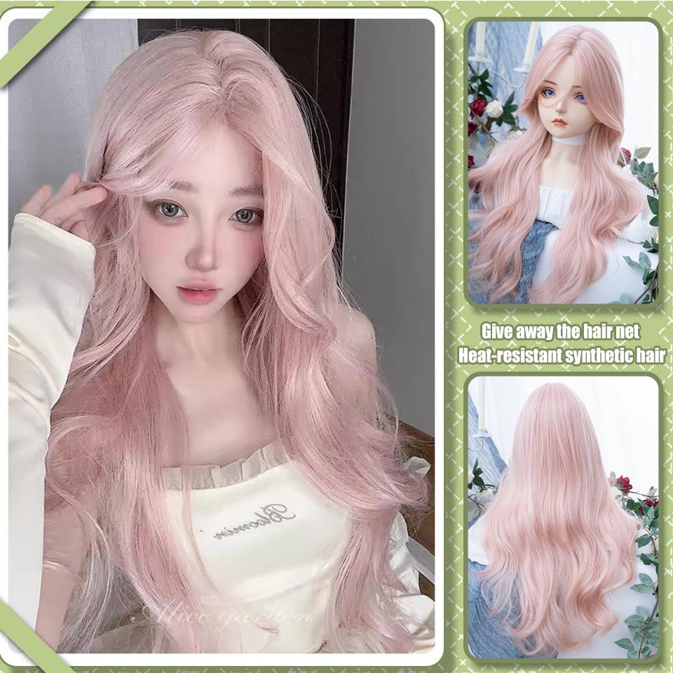 WTB розовый длинный вьющийся синтетический парик женский полный головной убор Лолита восемь челок большая волна девушка розовый натуральный парик волос покрытие 75cm