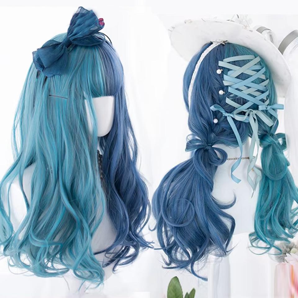 WTB Synthetic Wig Female Winter Color Sapphire Spell Light Blue Lolita Witch Dream Long Curly Hair New Year Party Wig 55cm