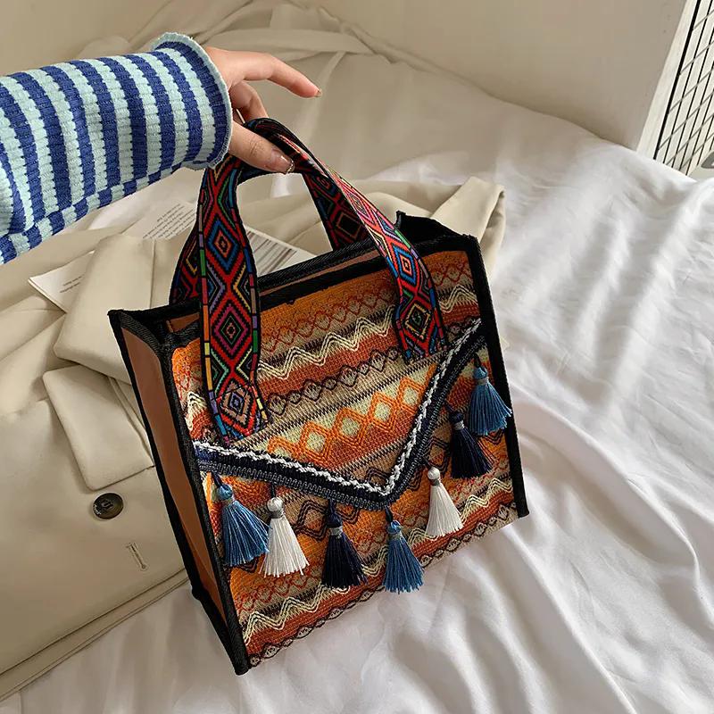 WTEMPO Большая вместительная сумка в этническом стиле, популярная женская сумка для поездок на работу, сумка с кисточками для женщин 1pc хаки