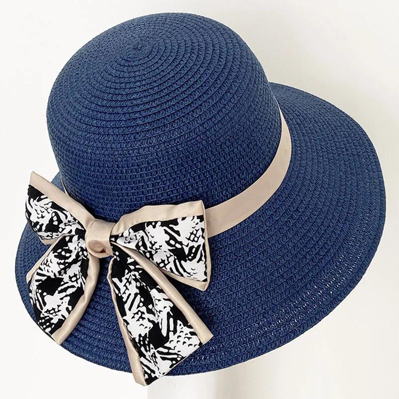 WTEMPO Женские летние повседневные дышащие шляпы от солнца с принтом и бантом, элегантные универсальные широкополые шляпы-ведра для отдыха на природе 1pc темно-синий