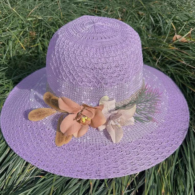 WTEMPO Женские однотонные широкополые дорожные пляжные дышащие солнцезащитные шляпы в стиле ретро, элегантные весенне-летние складные солнцезащитные шляпы с цветами 1pc