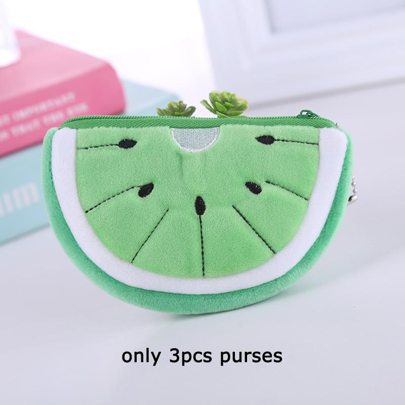 WTEMPO Милые мини-кошельки для монет, сумки для хранения на молнии с брелоками, креативные маленькие полукруглые сумки для ключей в форме арбуза, повседневные кошельки для мелочи 3pcs зелёный