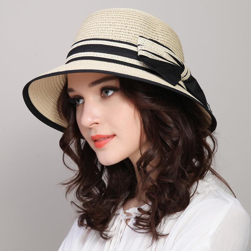 WTEMPO Повседневные универсальные элегантные стильные соломенные шляпы от солнца, летние стильные женские широкополые пляжные шляпы с полосатым бантом 1pc абрикосовый