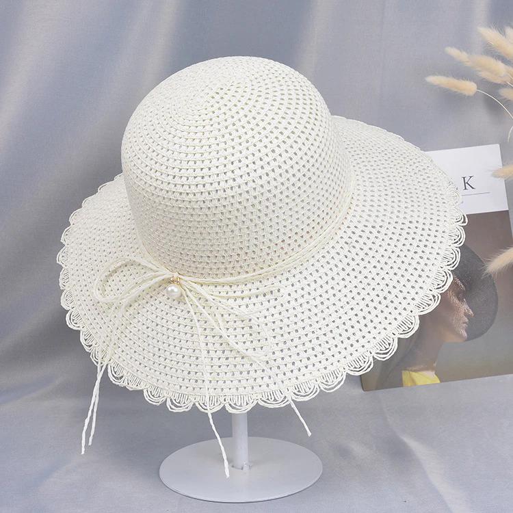 WTEMPO Складные солнцезащитные шляпы с жемчужным бантом, однотонные, весна-лето, с широкими полями, для путешествий, пляжа, дышащие солнцезащитные шляпы 1pc белый