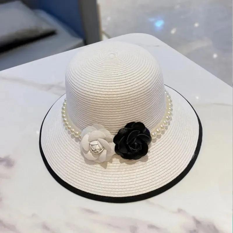 WTEMPO Черно-белые цветы, элегантные повседневные летние шляпы, женские широкополые однотонные солнцезащитные пляжные шляпы для шопинга 1pc белый