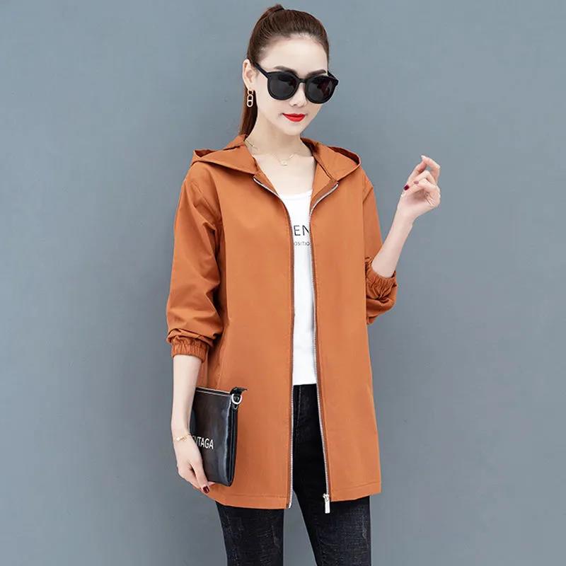 WTEMPO ветровка с капюшоном, женские пальто средней длины, весенняя солнцезащитная одежда, женская корейская свободная бейсбольная форма большого размера XL коричневый