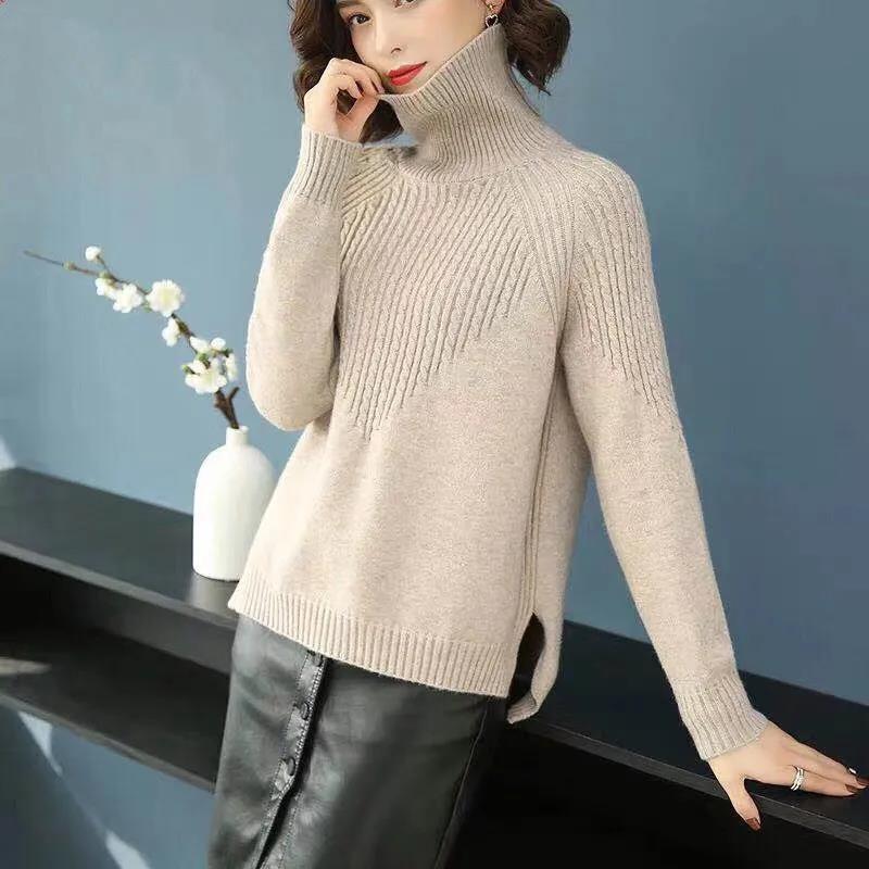 WTEMPO женские осенне-зимние свитера с высоким воротником, утолщенные весенние свободные вязаные нижние рубашки, пуловеры больших размеров, топы S