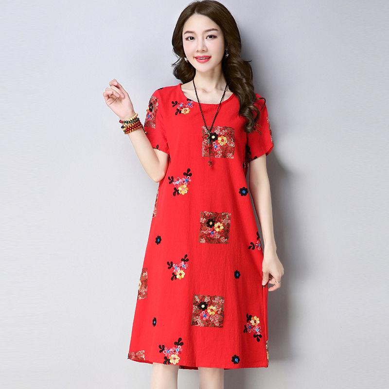 WTEMPO женское летнее платье с короткими рукавами и цветочным принтом, новая женская тонкая юбка большого размера с короткими рукавами XXL красный