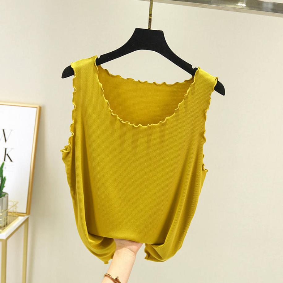 WTEMPO жилет на подтяжках с волнистыми краями, женский летний жилет из модала, рубашка без рукавов, облегающий топ с внутренней отделкой XXL жёлтый