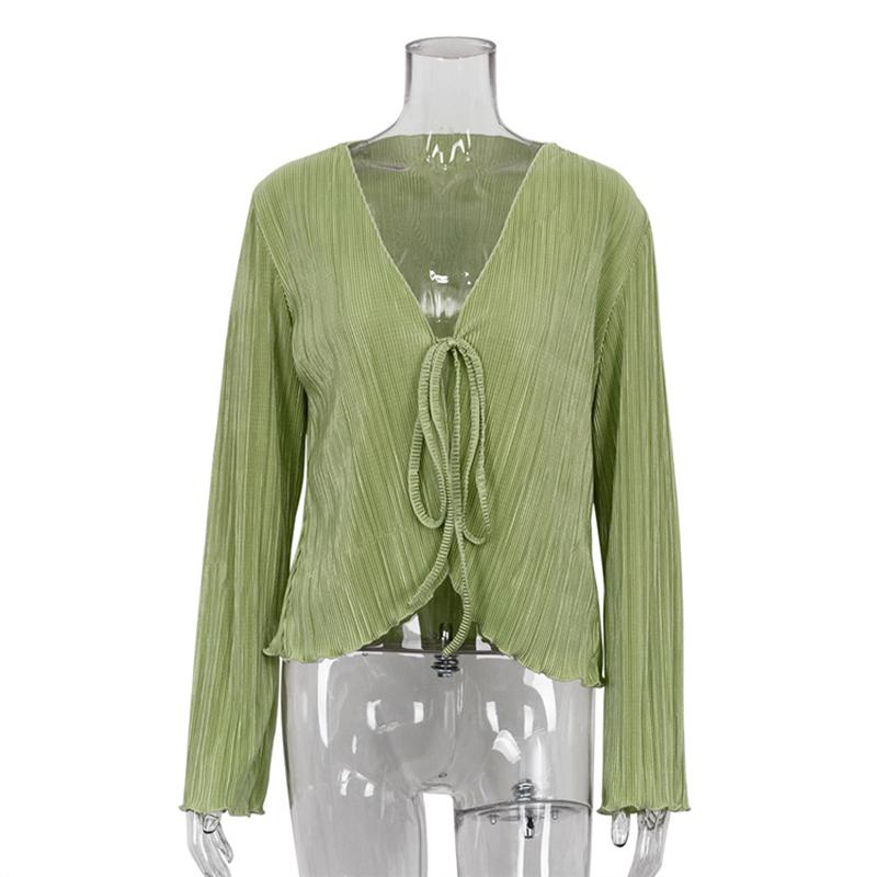 WTEMPO зеленые, бежевые женские рубашки на шнуровке, новые летние облегающие блузки с длинными рукавами, женские модные плиссированные топы, женская одежда 2023 L зелёный