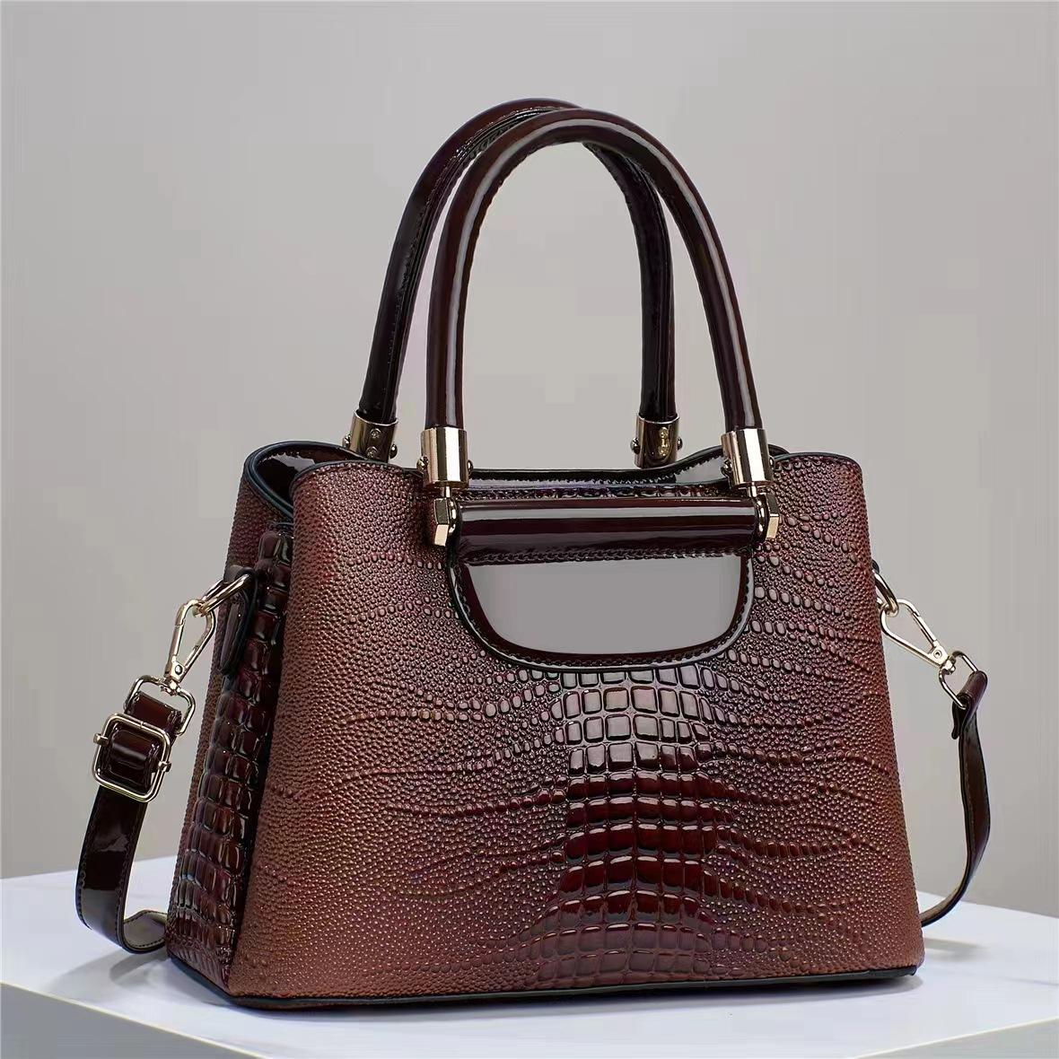 WTEMPO однотонные простые сумки для мам с крокодиловым узором, универсальные женские сумки на молнии, сумки через плечо большой вместимости 1pc коричневый