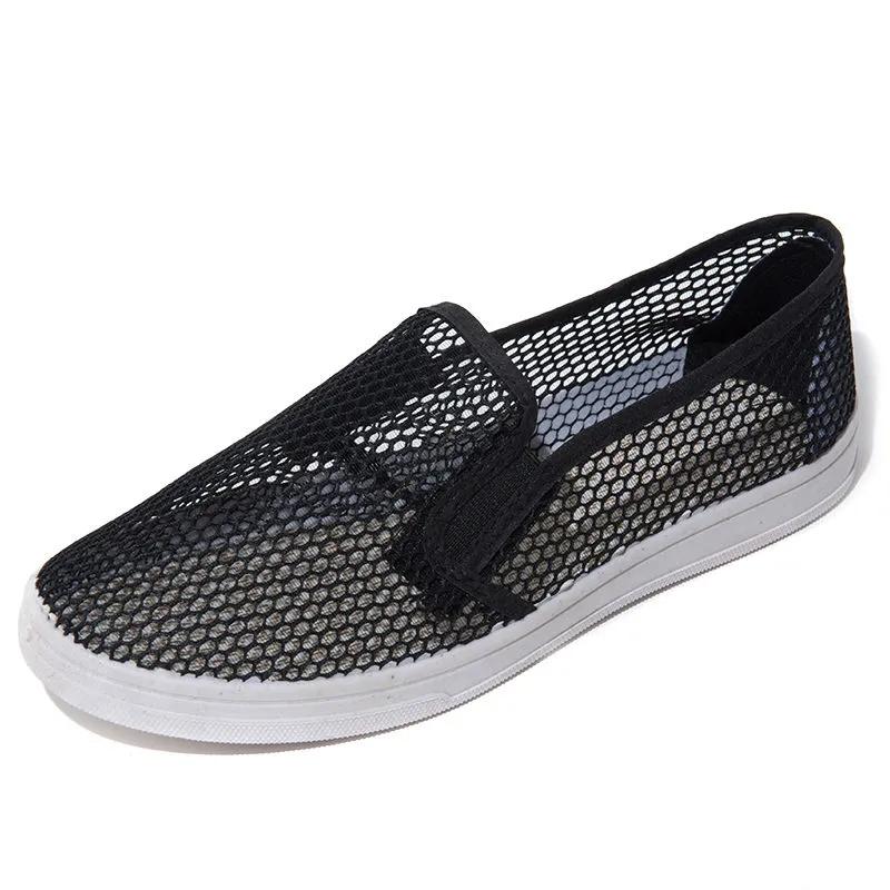 WTEMPO Простые черные белые сетчатые универсальные туфли женские повседневные легкие мягкие туфли на плоском каблуке без застежек 41 чёрный