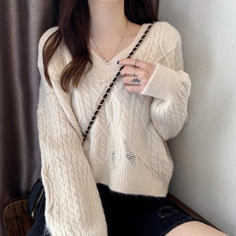 WTEMPO укороченный пуловер с v-образным вырезом, женский простой свитер, однотонная базовая осенняя одежда с длинными рукавами XXL абрикосовый