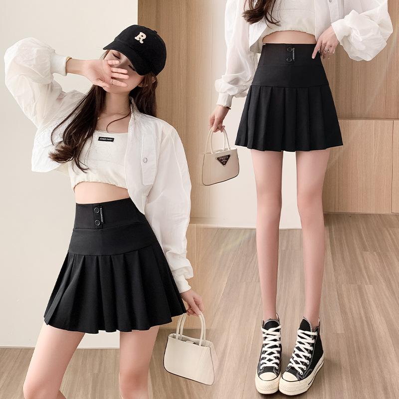 WTEMPO эластичная высокая талия Y2K однотонные плиссированные юбки для школьниц, повседневная универсальная корейская черная, серая мини-юбка S чёрный