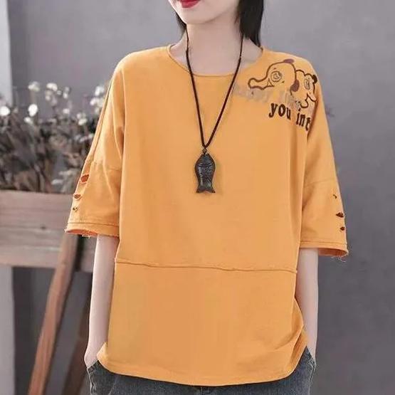 WTEMPO 100% хлопок, большие размеры, весенние и летние футболки с короткими рукавами, женские свободные универсальные топы с короткими рукавами и принтом 3XL жёлтый