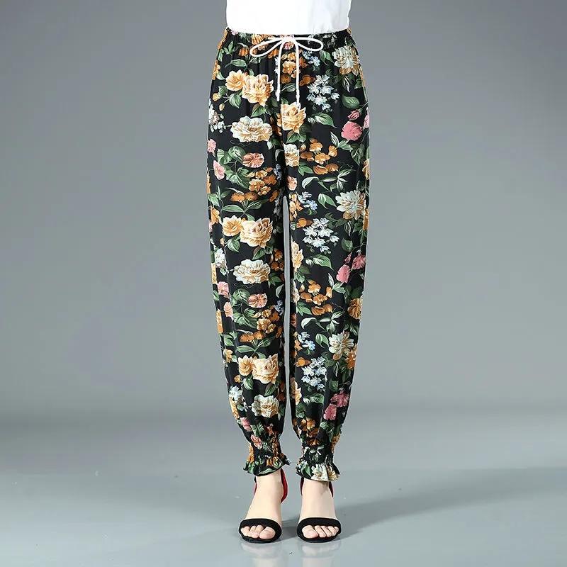 WTEMPO Mom Летние тонкие брюки из ледяного шелка с принтом женские эластичные брюки с высокой талией большого размера повседневные шаровары 2XL зелёный