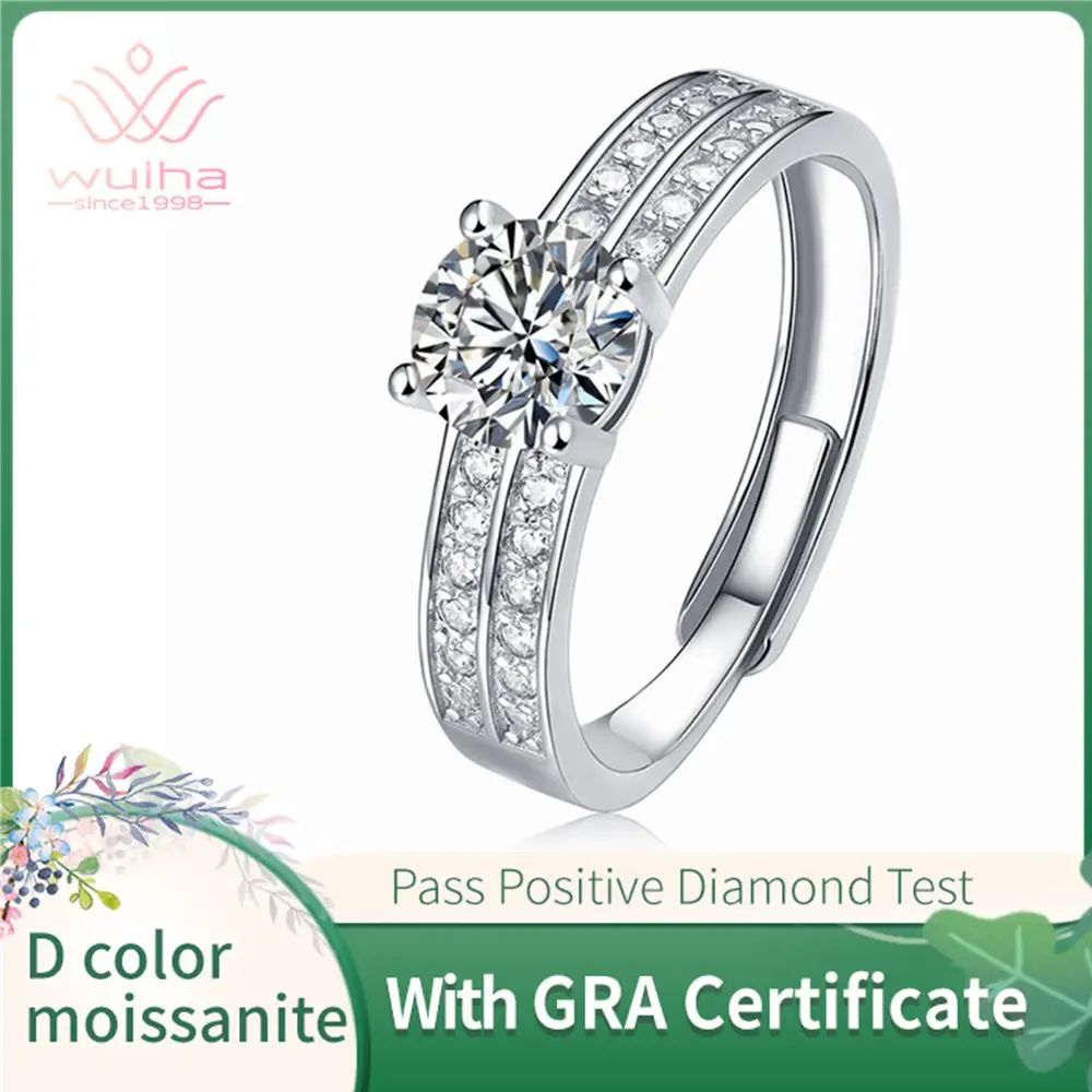 WUIHA 100% 925 пробы серебро 1CT круглая огранка D Цвет VVS1 настоящий муассанит драгоценный камень обручальное кольцо ювелирные изделия с GRA