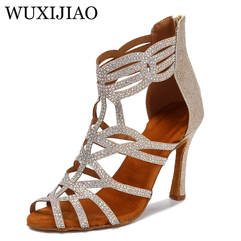 WUXIJIAO Женская Обувь для бальных танцев с открытым носком из эластичной ткани с мягкой подошвой для латиноамериканских танцев
