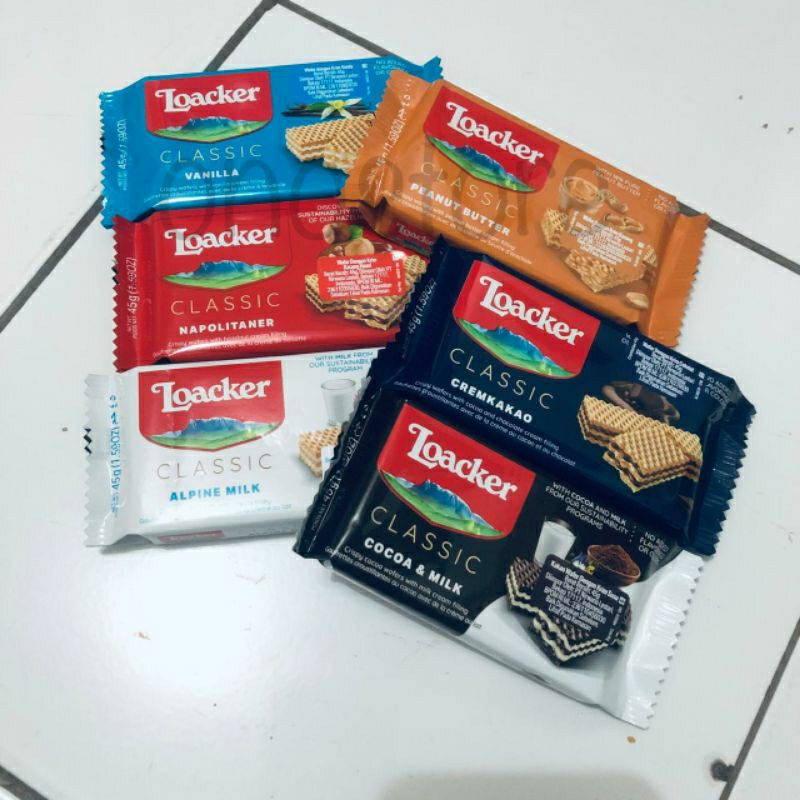 Wafer Loacker merupakan wafer legendaris asal Italia. Wafer lezat ini terkenal dengan rasa manis yang enak di mulut dan telah ada di Indonesia sejak puluhan tahun lamanya. Terbuat dari bahan alami pilihan seperti biji cokelat asli, kacang hazel Italia, biji vanilla Bourban, dan susu, membuat wafer ini menjadi camilan yang terasa nikmat dan memancakan mulut.