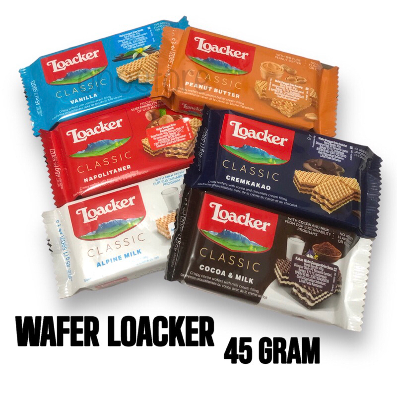Wafer Loacker merupakan wafer legendaris asal Italia. Wafer lezat ini terkenal dengan rasa manis yang enak di mulut dan telah ada di Indonesia sejak puluhan tahun lamanya. Terbuat dari bahan alami pilihan seperti biji cokelat asli, kacang hazel Italia, biji vanilla Bourban, dan susu, membuat wafer ini menjadi camilan yang terasa nikmat dan memancakan mulut.