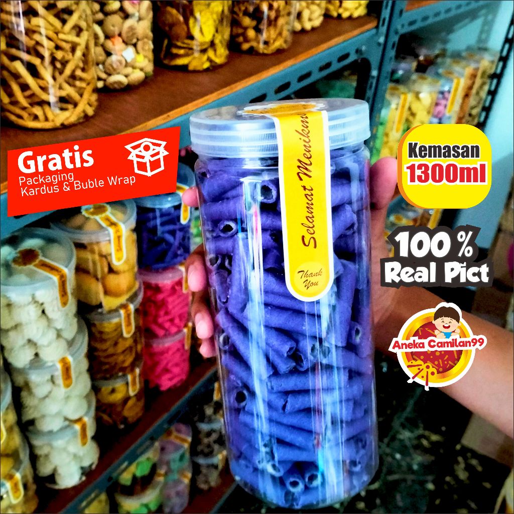 Wafer Roll Aneka Warna dan Rasa kemasan toples 1300ml cocok untuk suguhan maupun cemilan dirumah